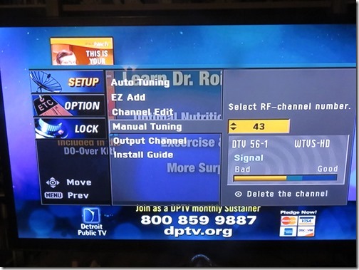 - Detroit, MI, 56.1 WTVS (RF43)...I was also shocked to see DPTV penetrating my viewing area! (It plowed through Buffalo’s WNED!)